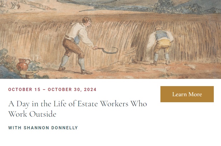 While the old standbys of ale and small beer as drinks for estate workers continued on through the Regency–particularly as the main drink in the fields during harvest time, the idea of a cuppa tea in the evening or early morning was growing. And more on Estate Workers of the Regency era will be in the workshop.